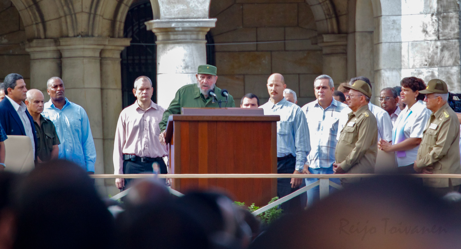 Tänään on Kuuban vallankumouskomitean, CDR:n ja maan ainoan poliittisen liikkeen, 50-vuotispäivä. Olemme nähneet 84-vuotiaan Fidel Castron puhuvan, ensin televisiossa ja sitten kilometrin päässä, vallankumousmuseon edustalla. Siellä oli tuhansia ihmisiä, perhekunnittain, vauvasta vaariin. Fidel seisoi puhujapöntön takana ja puhetta riitti puolitoista tuntia.