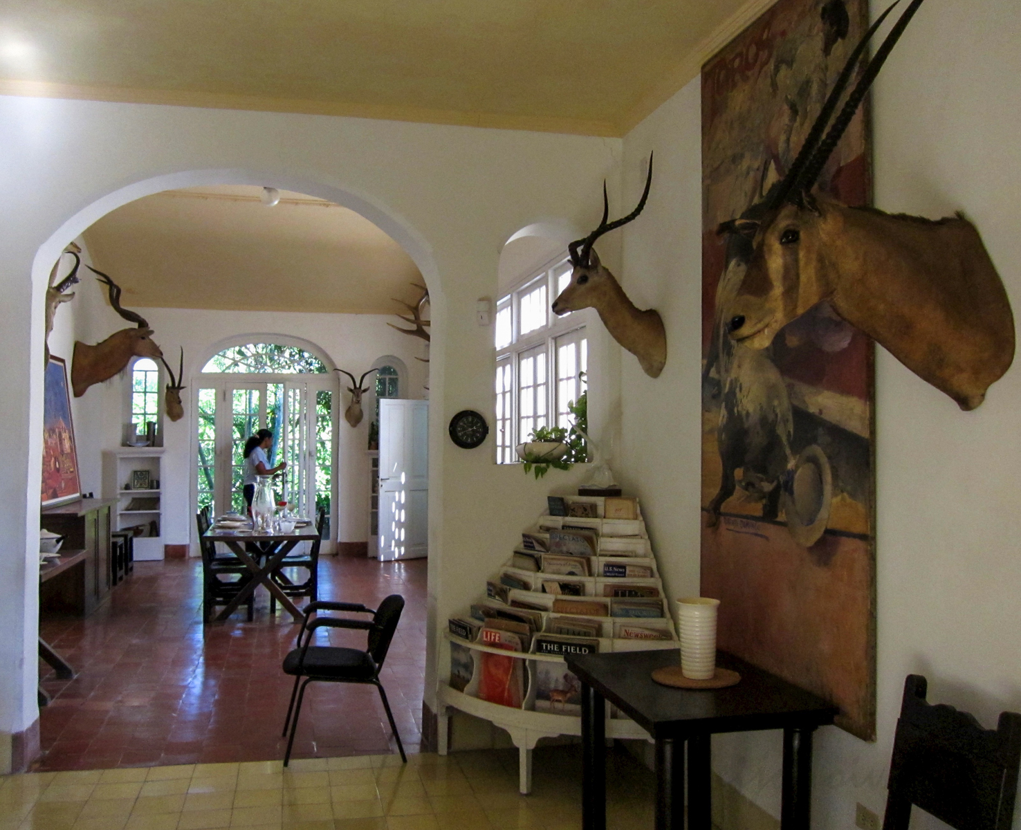 Tornin ylimmässä huoneessa on yksi kirjoittajan sopeista. Kun se valmistui, Hemingway keskittyi jo enemmän juomiseen kuin kirjoittamiseen. Hän tutkaili tornista kaukoputkella ympäristöä. Talossa kävi näyttelijöitä, kun kirjoja filmatisoitiin. Heille rakennettiin erillinen vierastalo puutarhaan. Mary raivostui, kun Ernest kiikaroi naisvieraiden uintia altaassa. Awa Gardner joko tiesi sen tai sitten ei, mutta hän keikkui altaalla alasti.