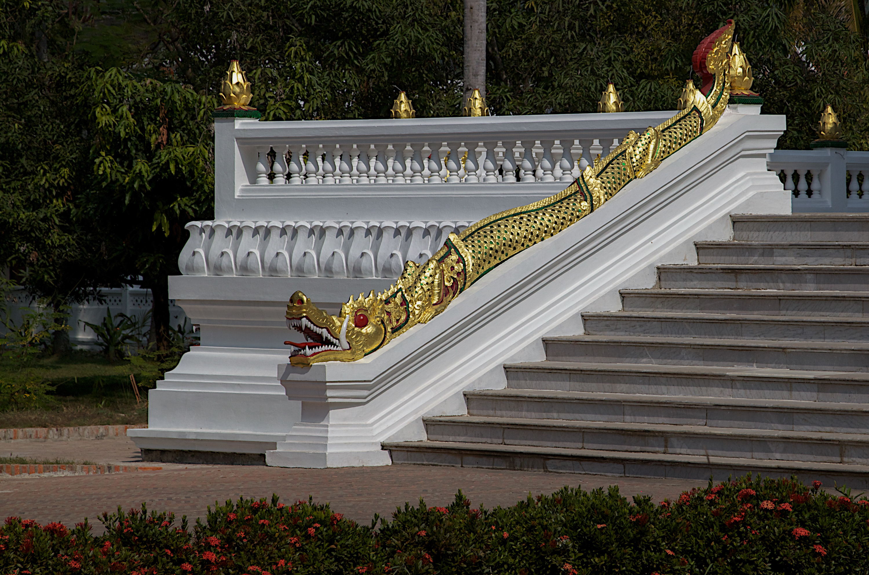 Luang Prabangissa on 150 temppeliä ja yli 500 munkkia. Köyhät eivät voi saada koulutusta muualta kuin luostarista. Sinne pääsee kymmenvuotiaana. Opetus pitää sisällään uskonnon lisäksi kaikki elämässä tarvittavat perustiedot ja taidot ja se on ilmaista. Jotkut jäävät munkeiksi mutta suurin osa palaa muutaman kouluvuoden jälkeen takaisin kotikylään.