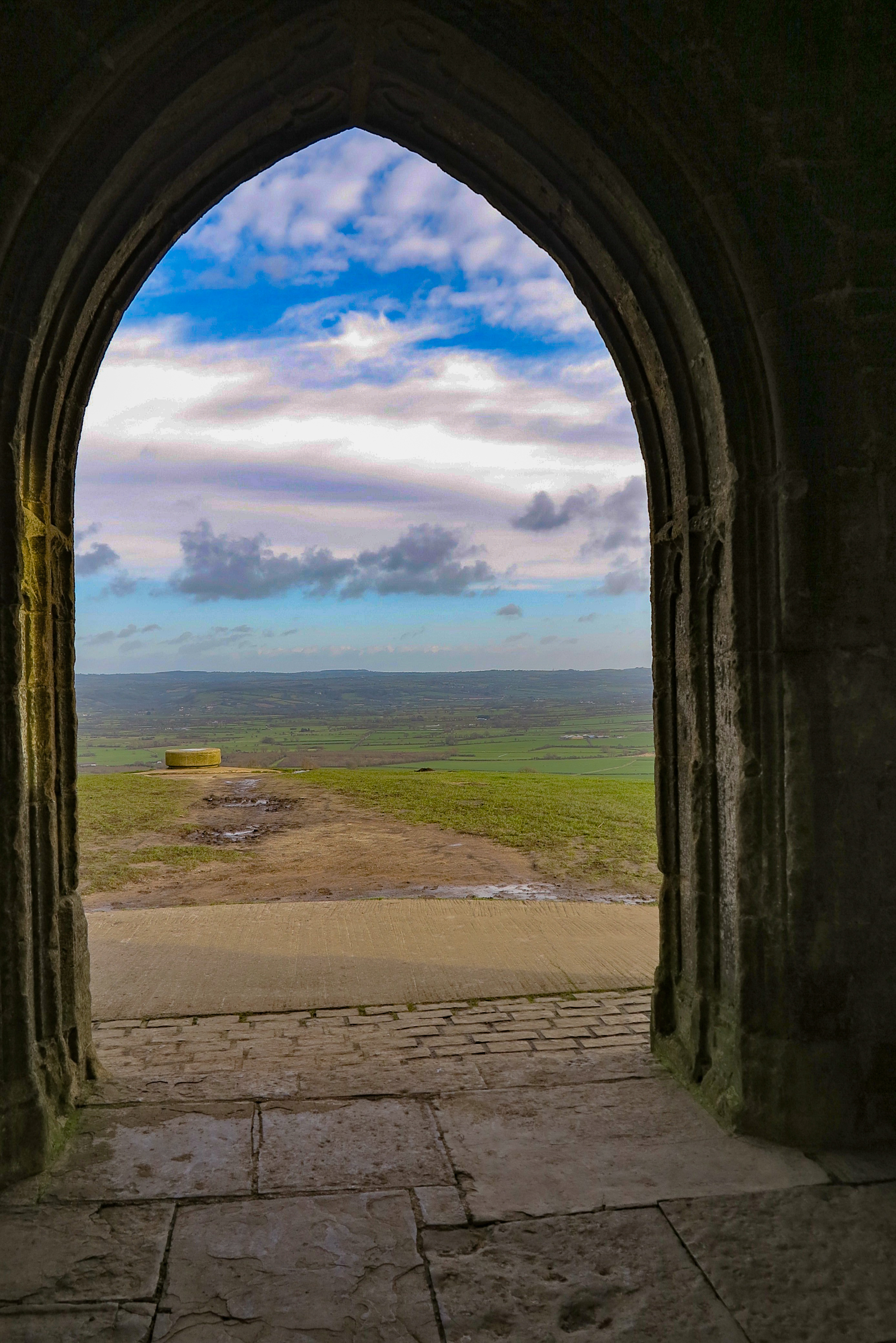 Nyt ei muistella menneitä vaan katsellaan uutta. Ensimmäiseksi ajamme Glastonburyyn, sen mäennyppylään ja torniin. Tuuli työntää meitä ylös katsomaan ikiaikaista maisemaa. Lammaslaumat käyskentelevät pelloilla ja harmaasta kivestä rakennetut talot pusikkoaitojen takana ovat vuosisatoja keränneet patinaa pintaan. Kiviseinät ovat vähän eri värisiä joka paikkakunnalla, joissakin aines vaaleaa harmaata, toisissa tummempaa tai aivan vaaleaa tai jopa keltaista. Kivi on kaivettu kussakin kylässä aina lähinnä olevasta peruskalliosta. Onneksi perinteitä jopa uudisrakentamisessa edelleen noudatetaan.