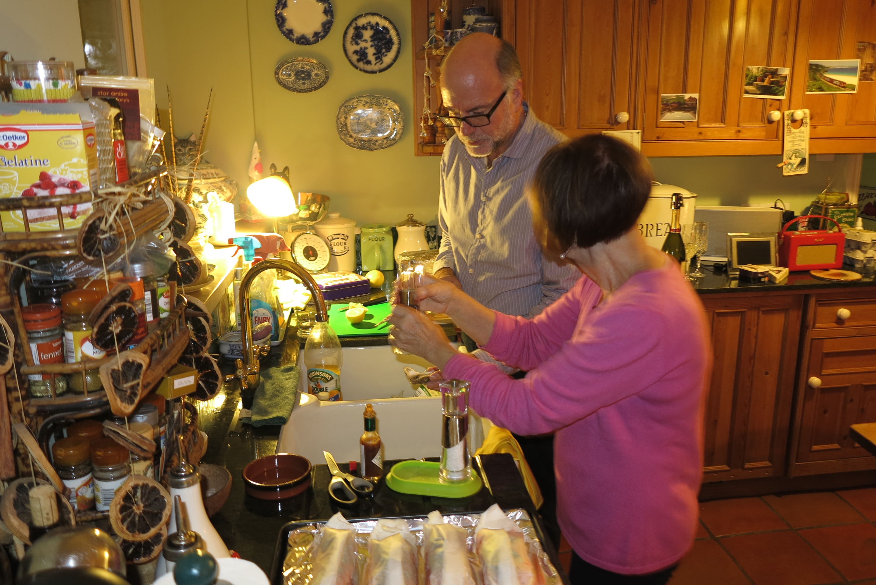 Castle Cary:n kylässä pysähdymme menneisyyttä arvostavaan teehuoneeseen – Mother’s Tea Room ja Burtonin kylässä kirkosta rakennettuun hotelliin ja gurmét-ravintolaan . Jos joku vielä naureskelee englantilaista ruokaa, vanhat luulot kannattaa unohtaa. Näyttävämpiä ja maukkaampia aterioita me syömme sekä ystäviemme keittiössä että Sommersetin ravintoloissa kuin melkein missä tahansa. Jos Stresassa erehtyy syömään menu turistico, saa syyttää itseään. Moni italialainen ravintola pitäytyy paikallisessa menussa, siinä mitä on syöty vuosikymmeniä tai vuosisatoja. Brittiläiset ovat ottaneet oppia naapureittensa ja entisten alusmaittensa ruokakulttuurista ja yhdistävät innovatiivisesti erilaisia makuja toisiinsa. Brittikokeista on viime vuosikymmeninä tullut maailmankuuluja, heistä Jamie Oliver ja Gordon Ramsey ehkä tunnetuimmat.