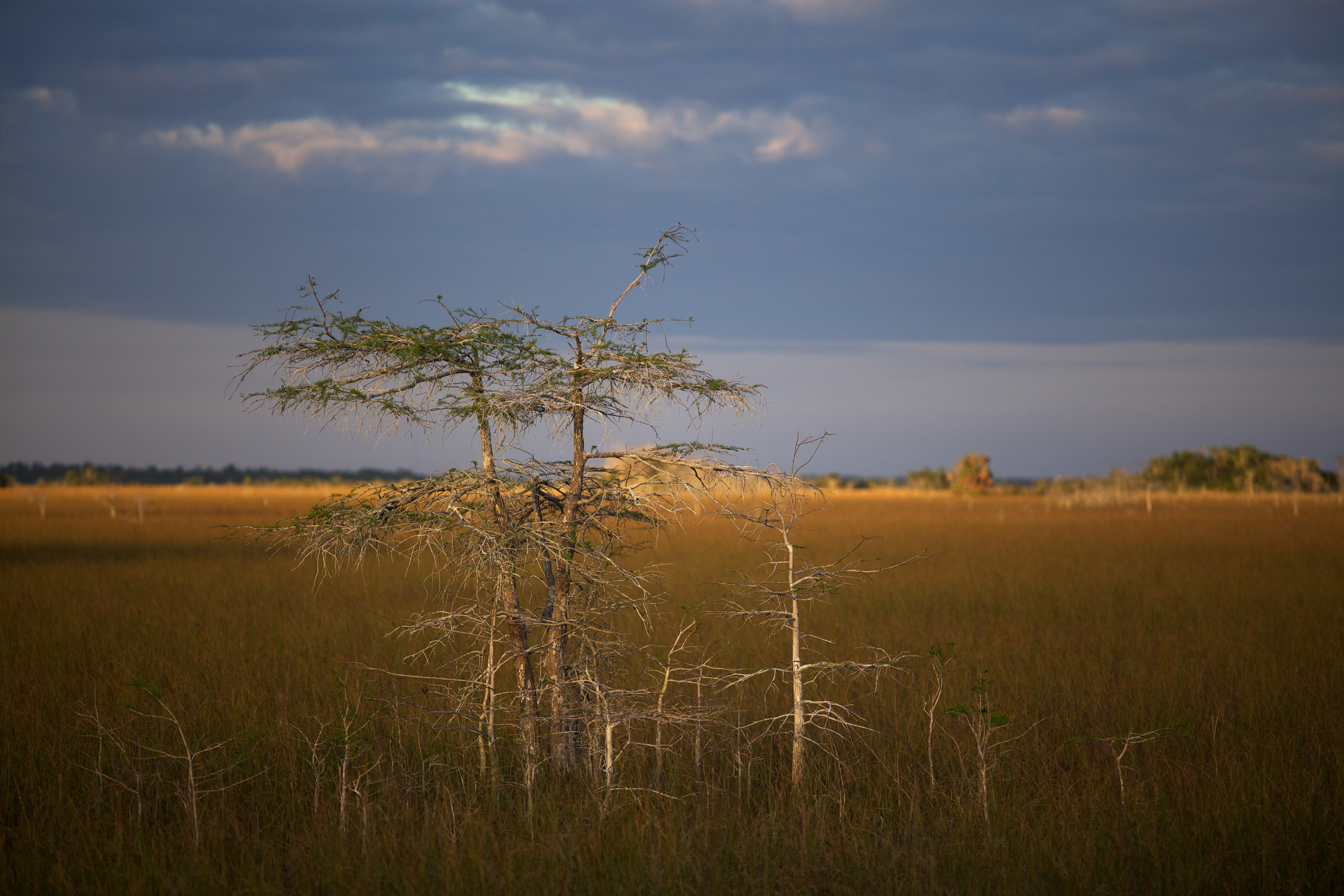 Everglades on pitkälti puutonta, välillä puut ja pensaat muodostavat saarekkeita (hammocks). Ne jäävät sateisena kesäkautena veden pinnan yläpuolelle. Osa Evergladesista on kitukasvuista havupuuta, Floridan seetriä. Niistä intiaanit rakentelivat veneitä, joilla liikuttiin saarekkeesta toiseen. Intiaanit asustivat Everglades-suolla 1700-luvulle, muuttivat sitten kuivalle maalle ja alkoivat elää kyläyhteisöissä kuten muut intiaaniheimot. Intiaaneilla oli neljääkymmentä kylää. Kun espanjalaiset löysivät Floridan, he perustivat ensimmäiset kaupunkinsa kauas intiaaneista, rannikolle– St. Augustin on vanhin ja parhaiten säilynyt espanjalaisten perustama kaupunki. Maahanmuuttajat ja intiaaniväestö sietivät sata vuotta toisiaan, kävivät kauppaa ja kähinöivätkin välillä. Espanjalaiset yrittivät taivutella intiaaneja orjatyöhön, muttei se onnistunut. Maahanmuuttajat laivasivat sitten tuhansia mustia Afrikasta ja ojittivat soita pelloiksi.