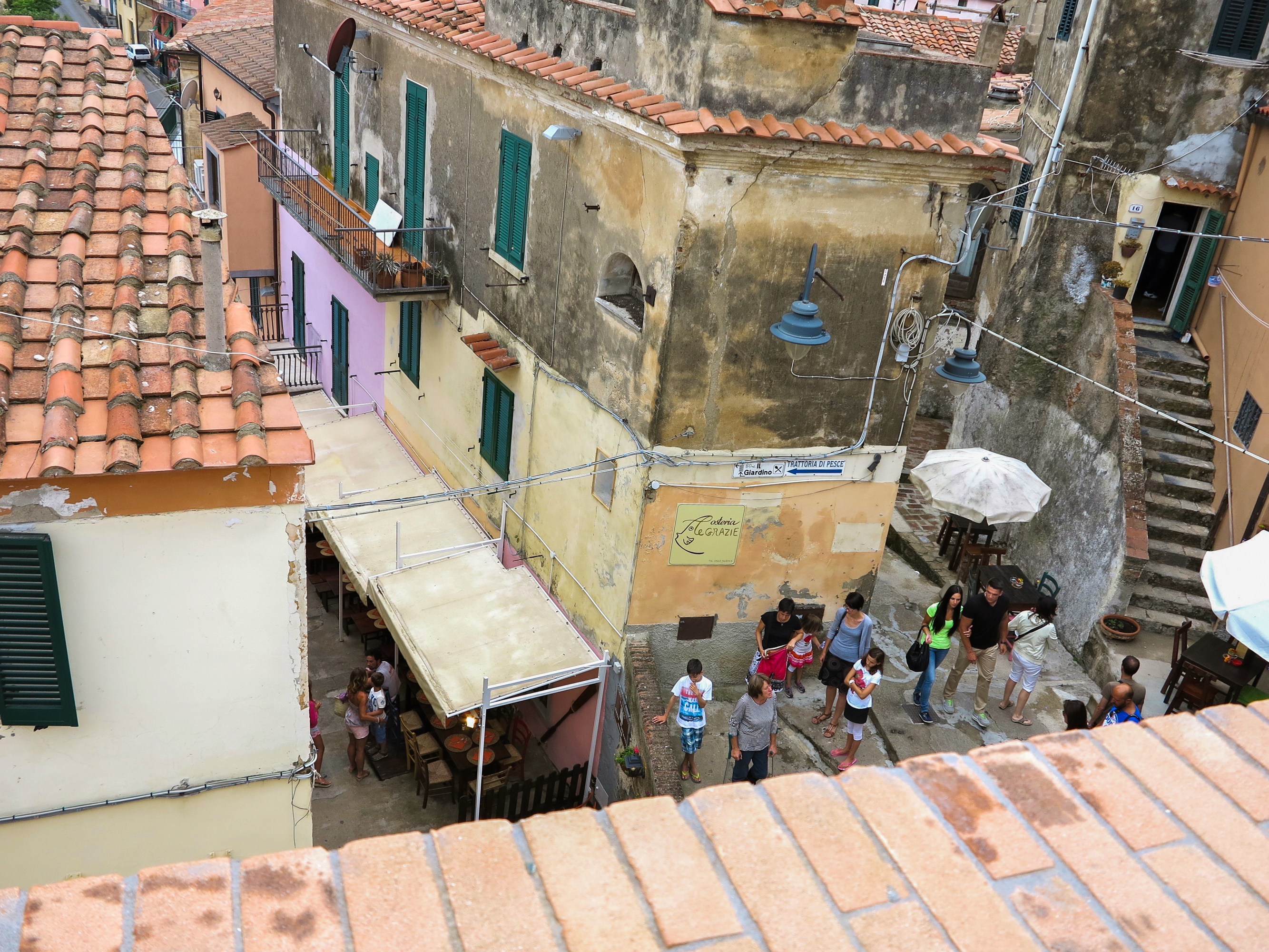 Elballa on kymmenkunta kaupunkia ja runsaat 30.000 asukasta. Etruskit ovat perustaneet saarelle ensimmäisen rautamalmikaivoksen, Calamitalle pääsisi oppaan kanssa vaeltamaan Capoliverin kaupungista. Viiden tunnin rupeama olisi liikaa, varsinkin kun pilvet roikkuvat matalalla. Yöllä ukkosmyrsky ravisutti kalliosaarta samaan malliin kuin Lago Maggiorella. Eeva oli käynyt katsomassa luonnonilmiötä pari kertaa ulkona terassilla.