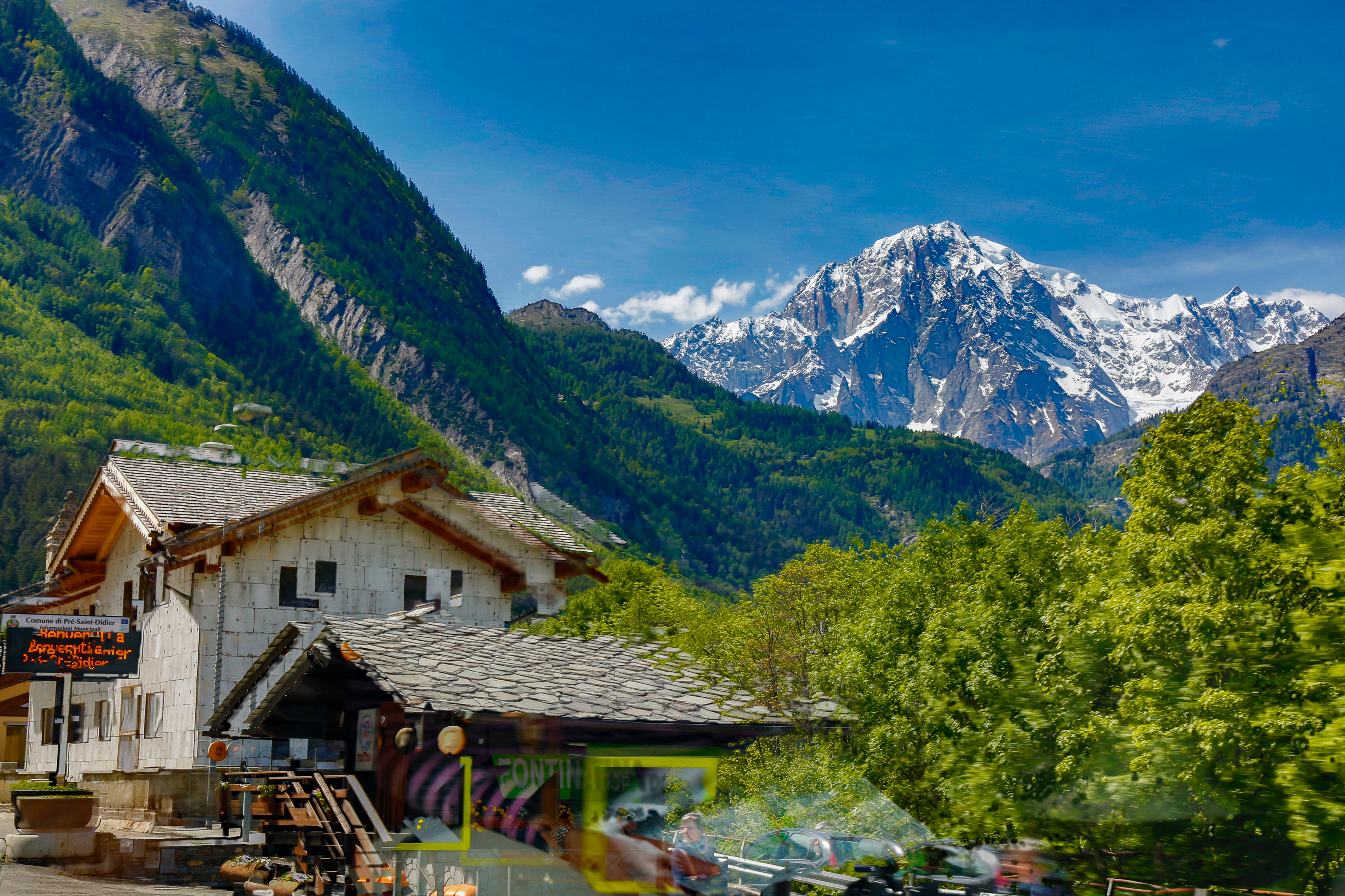 Fenestrellen linnoitusta alettiin rakentaa 1600-luvun puolella poliittisesti värittyneiden uskonsotien loppuvaiheissa. Se muodostuu kolmesta linnasta ja seitsemästä pienemmästä suojavarustuksesta, jotka on yhdistetty toisiinsa katetulla portaikolla. Ylimpien linnojen välillä on neljä tuhatta porrasta ja alimpien kaksi ja puoli tuhatta. Rakennelma kasvaa vuoren rinteestä kilometrien jonona kuin lohikäärmeen selkäpanssari. Sitä on käytetty puolustukseen ja vankilatiloina 1700-luvulta Mussolinin kauden loppuun asti. Toinen rakenteellisesti jämäkämpi linnoitus, Exilles, on Susan laaksossa ja sitä on alettu rakentaa jo 1100-luvulla Savoy-suvun voimin. Me lähestyimme sitä kävellen kolmelta suunnalta. Löysimme länsipuolelta 1600-luvulla rakennetun kilometrin pituisen rampin, mutta jyhkeä ovi ei auennut. Etelässä huomasimme kyltin rimanere invernale, eli suljettu talvella. Meille toukokuun loppu näyttäytyi jo kesänä, sillä laventeli, unikko, päivänkakkara ja niittyleinikki kukkivat, linnut lauloivat ja Alpit hehkuivat jylhinä. Laaksoissakin liikuimme jopa kahdessa tuhannessa metrissä ja Alpit ympärillämme hipoivat yli neljässä tuhannessa.