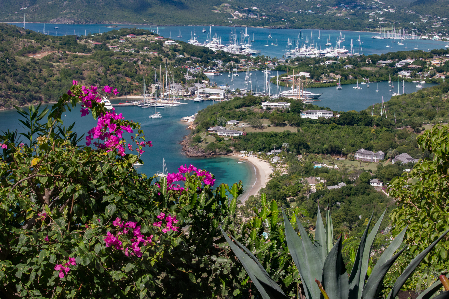 luonnonsatama, nimeltään English Harbour, jota on käytetty satamana siitä lähtien kun Kolumbus löysi saaret ja luultavasti jo intiaanit aiemmin. Kallioiden ja kukkuloiden suojaamaan satamaan pääsee lahden ja sen pohjasta avautuvan uoman läpi. Siirtomaavallan aikana brittiläisten satama oli purjelaivojen huoltokeskus. Siellä korjattiin Atlantin yli seilanneitten saamia kolhuja, uusittiin mastoja ja parsittiin purjeita. Nykyisin satama-alue on karibialaisen rantaelämän keskus. Monella kuuluisuudella on siellä omat huvilansa. Eric Clapton on perustanut Antiqualle huumeista ja alkoholista eroon pyrkivien hoitolaitoksen, jonne suomalaisoppaamme Hannalean mukaan pääsee Antiqualla kirjoilla olevat ilmaiseksi.