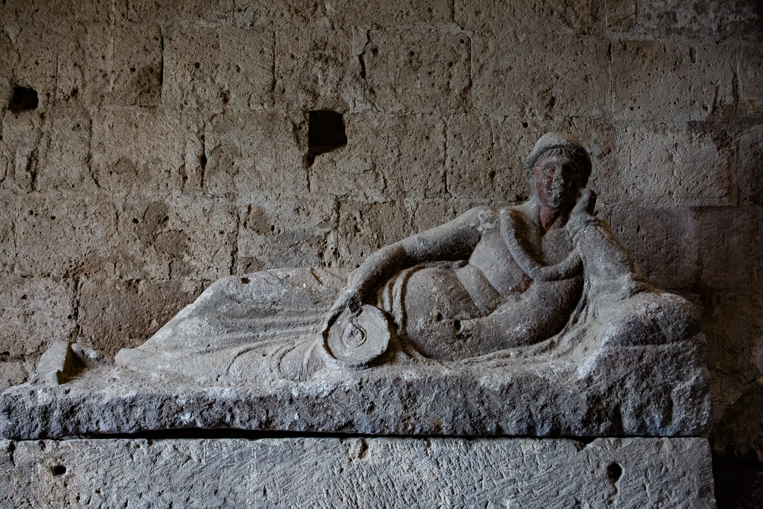 Nykyisen Orvieton paikalla oli kaupunki nimeltä Volsinii. Se saattoi olla suurin etruskikaupungeista tai sitten ei, mutta suurelta se näyttää. Tasanko, jolla nykykaupunki sijaitsee, on kuin laataksi leikattu vuoren huippu. Etruskikaupunki Volsinii kuului Etrurian 12 suurimman kaupungin löyhään liittoon, Dodecapoliin. Rinteet kaupungin reunamilta alas vainioille ovat korkeanpaikankammoisille kauhistus. Alarinteillä on yksi etruskien tunnetuimmista kuolleiden kaupungeista, Crosifisso del Tufo. Tufo on laavakiveä, vaaleaa ja rosopintaista, jähmettynyttä massaa, mutta suhteellisen helposti vuoltavaa. Paasikivet on ladottu päällekkäin ja lomittain kuin jättimäiset legopalikat siten, että niihin pääsee rappusia alas sisään. Ulkoseinien kaiverrukset ovat selvästi erotettavissa. Etruskit ovat kirjoittaneet ja lukeneet oikealta vasemmalle, mikä olisi ollut vasureille parasta ainakin vielä 60-luvulla, kun käytettiin mustekyniä.