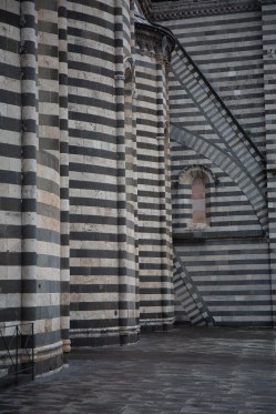 Ensimmäinen yöpymispaikkamme on Orvietossa. Saamme kuulla Ainolta, kuinka paavit pakenivat Orvietoon piispojen palatseihin Rooman rappiolta ja hulinoilta 1200-luvun lopulla. Niihin aikoihin uskotaan myös Bolsenan ihmeen tapahtuneen. Bolsena on kraaterijärvi, jonka rannalla Bolsenan kaupungissa kirkonmies kaatoi alttarilla ehtoollisviinin. Se muuttui vereksi, tahrasi liinan, sen alla alttaripöydän ja läikkyi vielä alttarin marmorisiin kylkiin. Liina on näytillä Orvieton tuomiokirkossa. Sitä on tutkittu nykymenetelmin ja verta siinä on, ihmisverta, ja lisäksi aikamääritys vahvistaa tapahtuman ajankohdan. Lieneekö DNA:ta tutkittu? Ja jos veri on Jeesuksen, voisiko hänen sukuaan löytää. Nämä ovat taas samoja aiheita, joista Dan Brown on kirjoittanut dekkarimenestystarinoitaan. Veriliina sopii kyllä muutenkin tuomiokirkon sisustukseen, sillä kappelien maalaustaide on paitsi huikeaa niin myös julmaa. Freskojen tuomiopäivän ja kiusausten kuvaukset ovat kauhistuttaneet lukutaidotonta kansaa 1400-luvulta ja saaneet sen tottelemaan vallanpitäjien käskyjä.