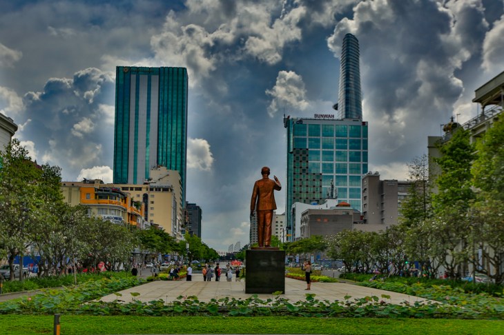 Ho Chi Minhin kuva riippuu postitalon takaseinällä. Hänen kullattu patsaansa tervehtii Union Squarella suihkulähteen takana sillä paikalla, jossa aikoinaan ranskalaishallitus otti vastaan satamasta tulevia ulkomaisia vieraita.