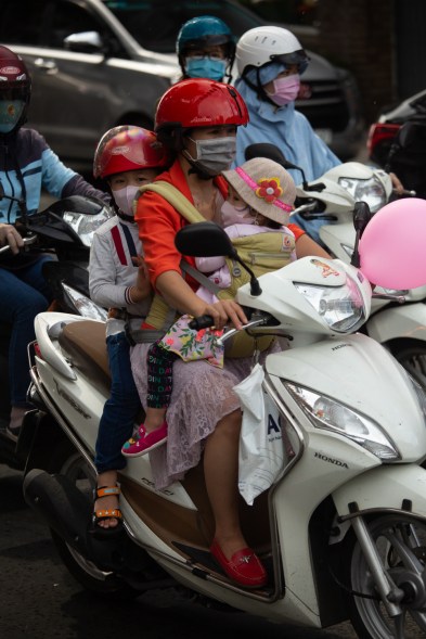 Saigonin väkiluku on kaksinkertaistunut vuoden 1975 jälkeen. Pilvenpiirtäjäkomplekseja ja ostoskeskuksia syntyy. Metroa kaivataan, mutta projekti on pysähtynyt. Saigonissa on yli 8 miljoonaa asukasta, lähiöt mukaan lukien 13 miljoonaa. Päivittäin kaduilla liikkuu 16 miljoonaa ajokkia ja niistä suurin osa mopoja. Kadut ovat kuoppaiset ja laattoja rikki. Meidän on katsottava mihin astumme. Illalla rotat vilahtavat ojiin. Mopoilijat jättävät ajokkinsa jalkakäytäville. Niiden ohi ei pääse kuin ajotien kautta. Liikenne vaikuttaa kaaokselta ja kadunylitys vaatii rohkeutta. Wee neuvoo, että kävelkää suoraan, ei saa epäröidä, mopojen kuljettajat väistävät kyllä. Kun mopot vyöryvät kohti, astumme vain rauhallisesti sekaan kuten paikalliset ja selviämme hengissä.