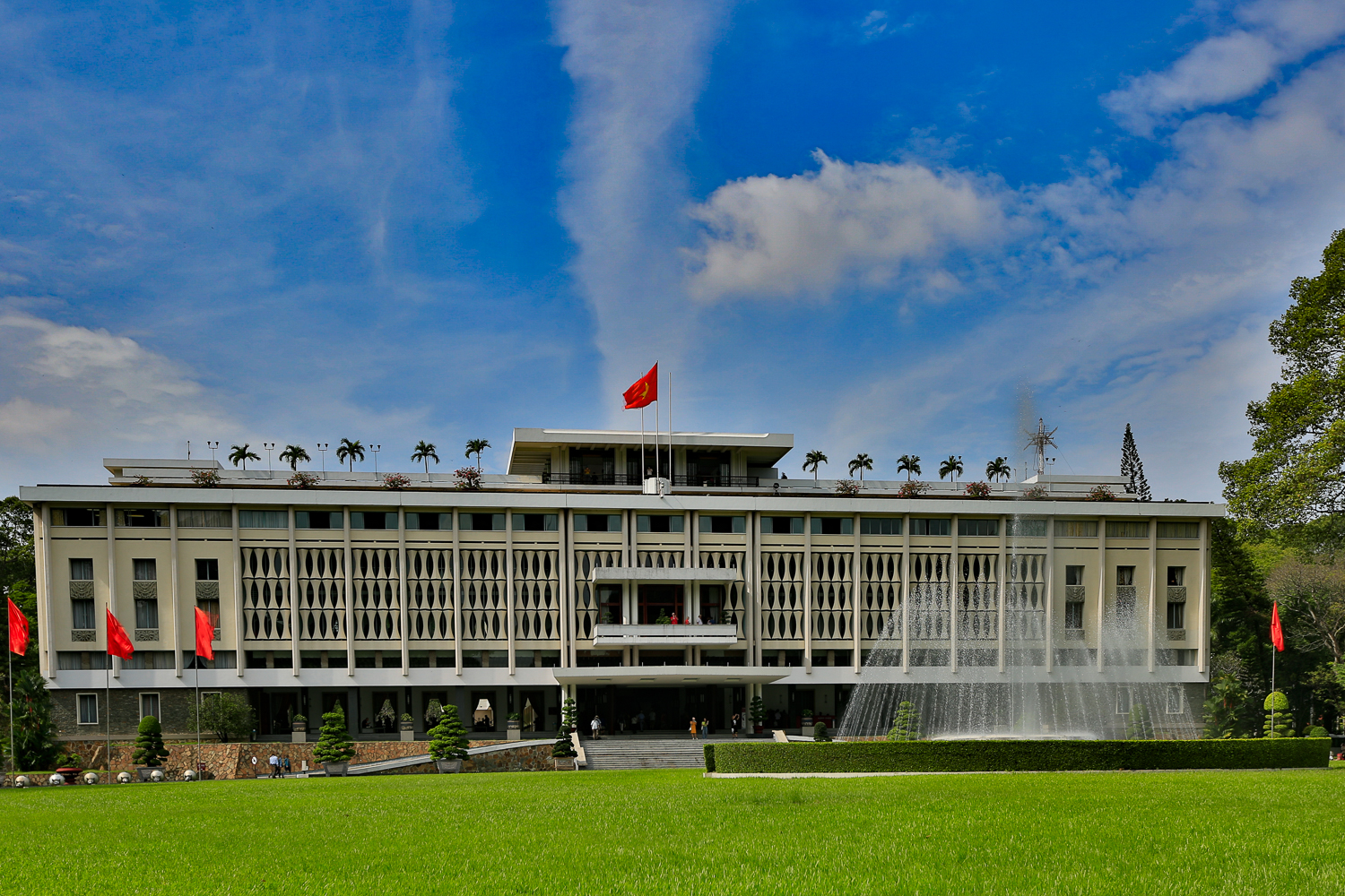 Ranskalaisten vallanpitäjien 1800-luvun lopulla rakentama Norodom-palatsista on vain kuvia. Se tuhoutui kahden Etelä-Vietnamin armeijaan soluttautuneen pohjoisen sotilaan junailemassa pommihyökkäyksessä 1962. Jo silloin oli monella kova halu päästä itsevaltiaasta Diemistä, jota Ranska tuki. Välittömästi attentaatin jälkeen Diem alkoi rakentaa ylettömän kallista, uutta palatsia. Ehkä se oli köyhälle kansalle viimeinen tikki, sillä Diem sai kuulan kalloon vain vuotta myöhemmin. Uusi presidentti otti palatsin käyttöönsä vuonna 1967. Se, Independence Palace, on komea reliikki aikansa mahtipontista arkkitehtuuria. Palatsista johdettiin Vietnamin sotaa. Sen neuvotteluhuoneessa Kissinger yritti vakuuttaa Etelä-Vietnamin presidenttiä hyväksymään Pariisin rauhansopimuksen ehdot, kun Yhdysvallat päätti lopulta irrottautua maan sisäisistä kiistoista. Pohjois-Vietnamin presidentti, Ho Chi Minh kuoli Hanoissa jo 1969, mutta hänen ideansa maan yhdistymisestä kantoi niin, että Saigonista tuli Ho Chi Minh City.