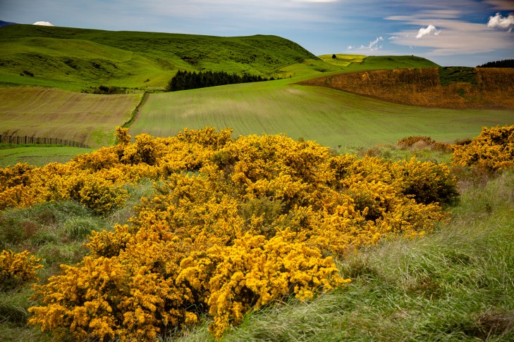 määränpäämme on eteläsaari, hyppäämme junaan, istumme sataman takapihojen jälkeen samettisissa kukkulamaisemissa lähes kaksitoista tuntia ennen kuin pääsemme pohjoissaaren eteläpäähän, Wellingtoniin.