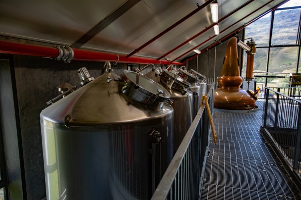 Cardrona Distillery ei pyri massamarkkinoille. Tuotanto on pieni, mutta viskit, vodkat, ginit ja appelsiiniliköörit valmistetaan huolellisesti puhtaimmista ainesosista. Saamme maistaa ja oppia maistelemaan. Uskomatonta, mallasohran maun aistii jopa vodkasta.