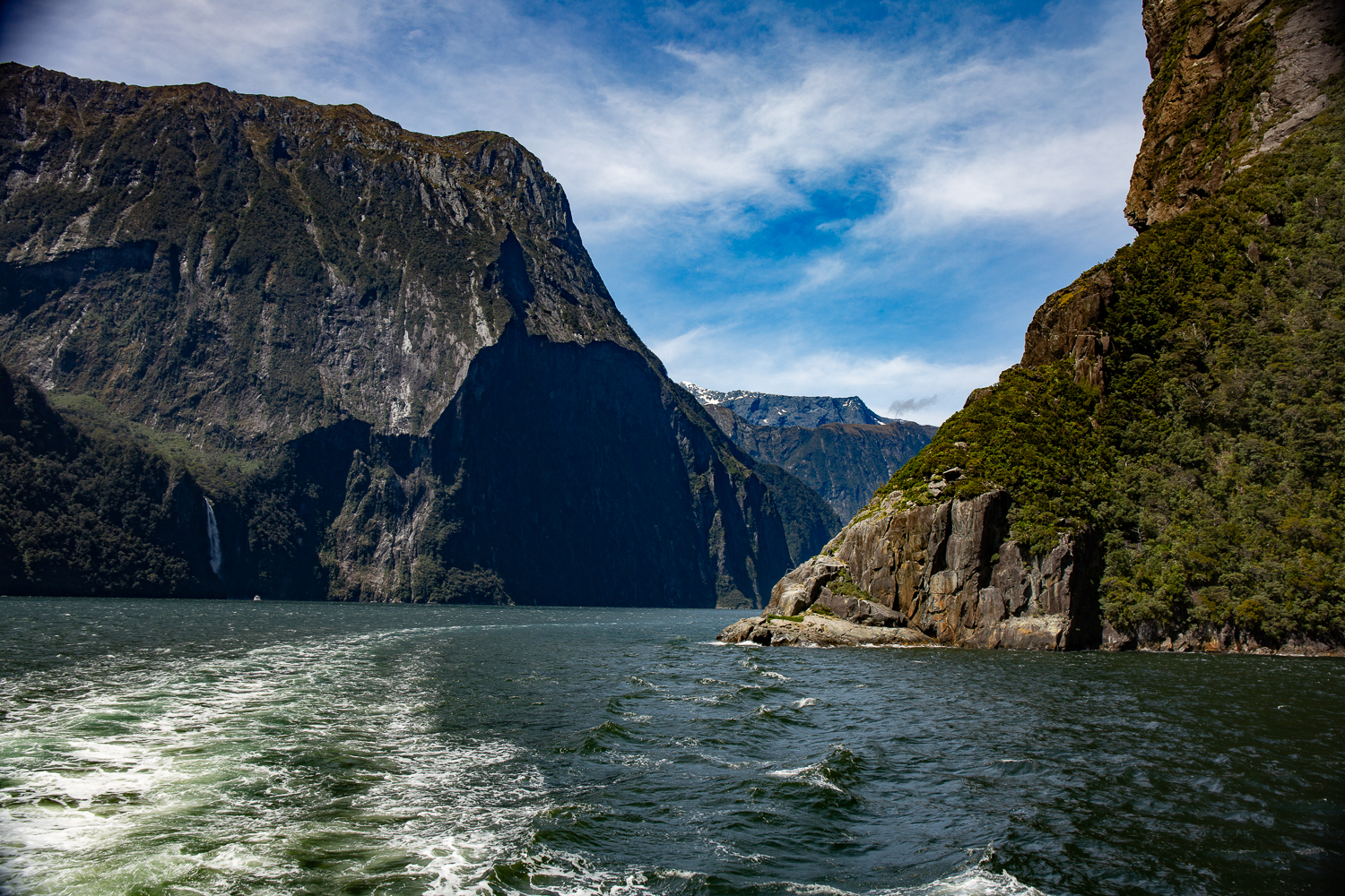 Milford Sound on muodostunut jääkauden jättimassojen sulaessa ja jäätyessä, graniitti on haljennut jokimaiseksi merelle avautuvaksi uomaksi. Vuoret ovat yli pari kilometriä korkeita ja jylhimmissä ikijää koreilee auringonpaisteessa. On kevät. Jään sulaessa vesi valuu noroina kielekkeiltä joka puolelta. Näky on enemmän kuin satumainen. Ei ihme, että Sormusten herra -elokuvia on työstetty juuri näissä maisemissa.