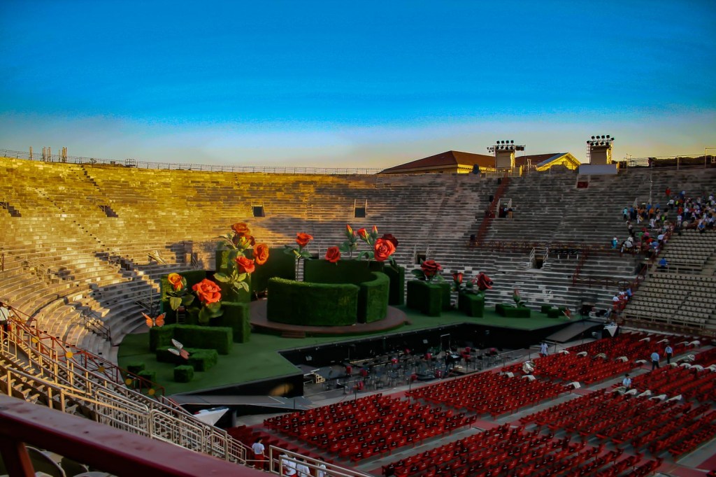Veronassa on leppoisa tunnelma. Kesäisin keskustan kadut ja kujat ovat täynnä oopperavieraita, mutta joen toisella puolella on tilaa. Sieltä on kävelymatka keskustaan, jonka katunäkymät ovat tuskin muuttuneet satojen vuosien varrella, sillä talot ovat keskiaikaisia, mutta Goethen ajoista kaupunki on siistiytynyt. Kaunista ja ylevää, sitä vierailijat odottavat. Luksuskauppoja, baareja, kahviloita ja ravintoloita. Parvekekukat hehkuvat. Vaikea uskoa, että paikalliset asuvat keskustassa, vaan asunnot siellä kuten monen muun turistikohteen keskustoissa ovat muuttuneet vuokra-asunnoiksi tai pienhotelleiksi. Meille ulkomaalaisille näytettiin asuntoa yli kaksikymmentä vuotta sitten, kun etsimme paikkaa Italiasta. Suhteellisen kallis se oli, avoin tila, keittiönurkkaus ja alkovi, mutta näkymä avautui muutaman katon yli Areenalle. Asunto voi olla nykyisin halvimman luokan AirB&B.