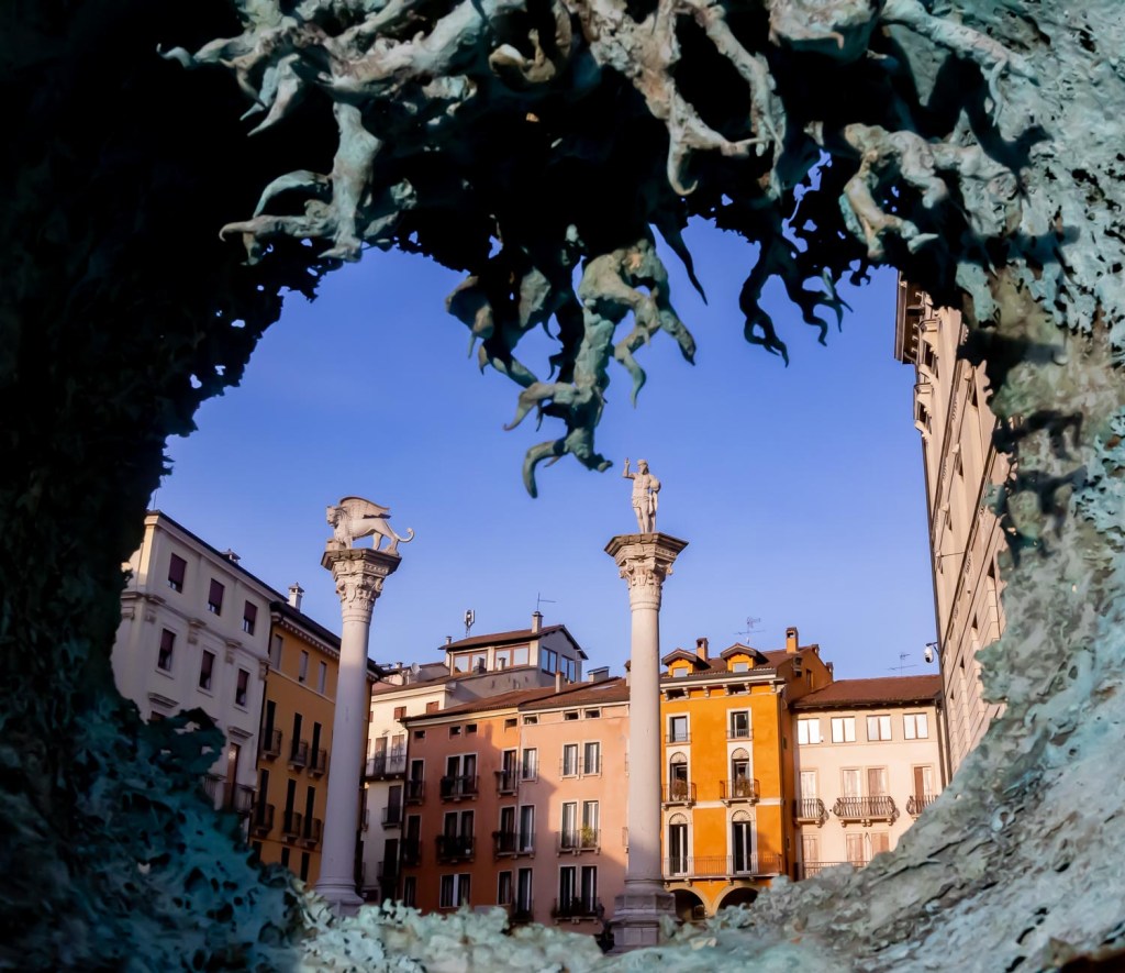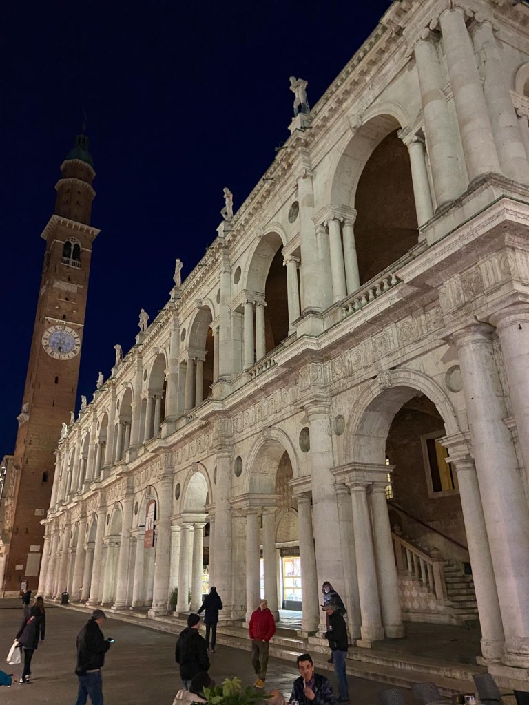 Vicenzan keskustori, Piazza dei Signori, on Palladion rakennusten ympäröimä. Paikalliset ja turistit hakeutuvat sinne, viihtyvät siellä kuten kaikki jo keskiajalla. Torin merkittävin rakennus on Basilica. Se oli parisataa vuotta vanha kivirakennus, raatihuone, kun Palladio sai toteuttaa sen ympärille kaksikerroksisen terassin 1500-luvun puolivälissä. Hänen ajatuksensa oli luoda paikka, jossa kaupunkilaiset saattoivat etsiytyä toistensa seuraan. Palladion joonialaiset ja doorilaiset pylväät keventävät valtaisan rakennusmassan suhteet niin, että rakennus näyttää todellisuutta pienemmältä. Alakerrassa on kauppoja ja virastoja. Kun portaita kiipeää toiseen kerrokseen, toivoo, että olisi valinnut hissin, sillä askelmia on varmasti vähintään neljän tavanomaisen kerroksen verran. Ulkopuolelta pylväsrakennelman takaa kohoavan kuparipeitteen alla oleva kupoli muistuttaa sisältä nurin päin olevan jättikokoisen puuveneen pohjaa. Tilassa on parhaillaan keskiaikaisten muotokuvien näyttely.