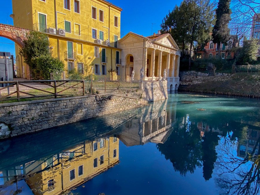 Palladio suunnitteli useita huviloita, niistä monta Valmaranan mahtisuvulle. Goethe vierailee kaikissa. Loggian löydämme lähes sattumalta kaupungin laidalta vesivallin kupeesta. Voimme vain kuvitella vastaanottoa huvimajan terassilla, ehkä soutuveneet kiinnitettiin poijuihin ja vieraat pääsivät nousemaan portaita verannalle. Nykyisin vakuutusyhtiö pitää toimistoaan rakennuksessa.