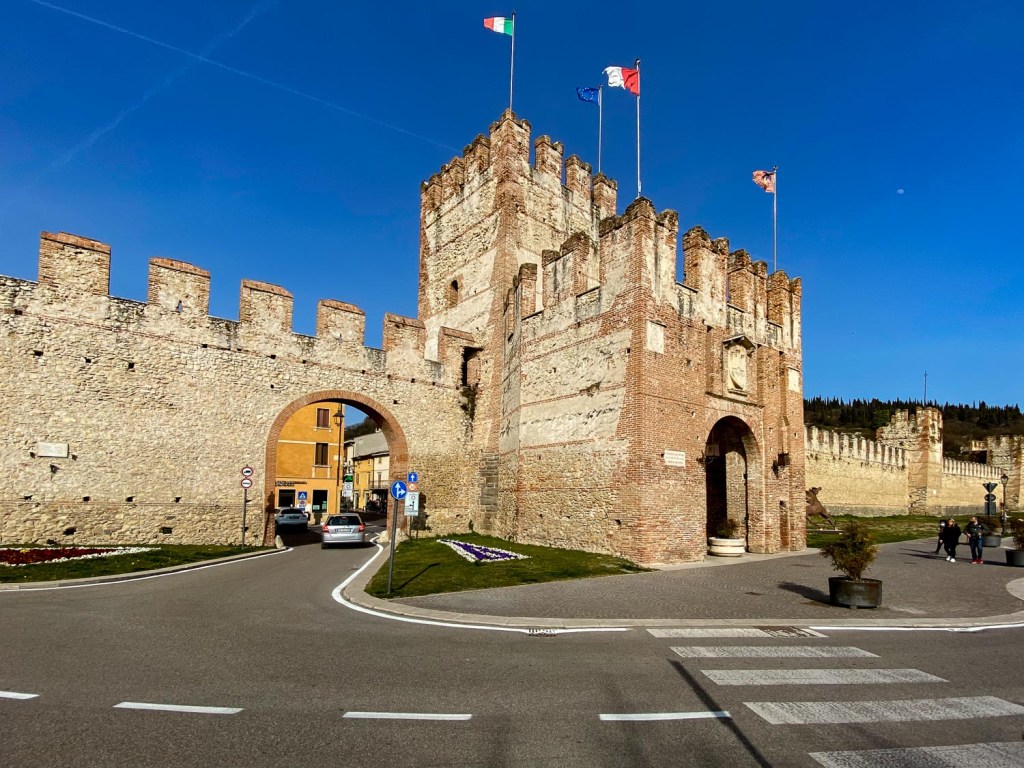 Hämmästymme näkökenttäämme yllättäen ilmestyvää ylvästä linnaa. Se on Soave! Nimi tuli meille tutuksi 1980-luvulla. Sen merkkinen valkoviini oli hintalaatusuhteessa parasta kuivaa mitä Alkosta löytyi. Yli kolmekymmenen vuoden takaisia illanistujaisia muistellen pysähdymme linnan kupeeseen. Kaupunkia ympäröi keskiaikainen muuri. Tiiliholvatun portin kyltissä kerrotaan, että kaupunki on perustettu vuonna 1375. Viiniä on tuotettu siellä varmasti jo aiemmin. Alko-nimistä asiakasta viinikaupassa ei tunneta, vaikka aikoinaan Alkon ja Systembolagetin ostajat kiersivät yhdessä Keski-Eurooppaa ja ostivat tankkikaupalla pohjoisten kansojen makuun sopivia ilojuomia. Soavea meillä on nyt kolme erilaista pulloa. Jonain iltana voimme maistella ja muistella yhteiselomme ensi vaiheita.