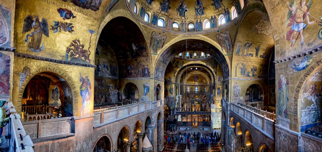 Olemme nähneet jotain vastaavaa Palermossa, mutta Pyhän Markuksen kirkon kauneus pistää hiljaiseksi. Seinäreliefi, joka erottaa alttarin kirkkosalista, on ennennäkemättömän yksityiskohtainen, pyhimyksiä, enkeleitä, kultaa ja korukiviä, valmistunut vuonna 1102. Ovella pyydetään kolme euroa sisäänpääsyyn, seinäreliefin luokse pari euroa lisää ja kolmas rahastus tapahtuu noustessamme parvelle, loggiaan, jossa kuuluisat hevoset odottavat.