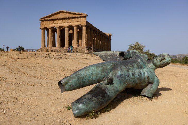 Agrigento on suurin ja merkittävin akropolis Kreikan ulkopuolella. Jossain vaiheessa sen temppelit muutettiin kirkoiksi ja osa niistä hylättiin kokonaan. Agrigento joutui ensimmäisenä italialaisena kaupunkina saraseenien valtaamaksi suunnilleen vuonna 900. Normannit ottivat sen heiltä parisataa vuotta myöhemmin. Köyhyys jatkui ja syveni espanjalaiskuninkaan vallan alla. Garibaldin maailma loi hetkeksi valoa, kunnes se joutui toisen maailmansodan pommituksen uhriksi. Vasta viime vuosikymmeninä se on noussut maailmanhistorian arvokohteeksi.
