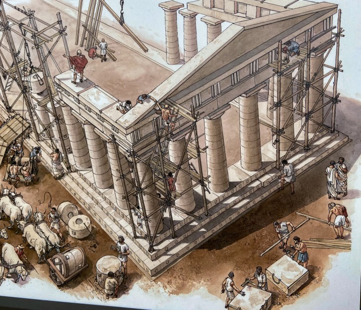 Iältään vanhimmasta, jo 600 vuotta ennen ajanlaskuamme rakennetun Herkuleksen temppelistä Goethe erotti muinaisen symmetrian jälkiä. Hänen aikanaan pylväsrivit, jotka reunustivat temppeliä molemmin puolin, makasivat maassa samansuuntaisesti pohjoisesta etelään. Nyt ne ovat taas pystyssä.