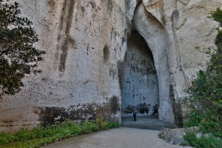 Goethe jätti Syrakuusan väliin syystä, että hän uskoi sen olevan pelkkä suuruutensa varjo. Ehkä se hänen aikanaan oli sellainen. Me taas viihdyimme Syrakuusassa kolmisen vuotta sitten tammikuussa. Olisimme olleet siellä kuukauden, mutta viikko riitti, koska sää tuotti pettymyksen. Mereltä vihmova tuuli antiikin raunioilla läpäisi liian kevyet päällysvaatteemme ja pakotti meidät etsiytymään sisätiloihin. Mieleenpainuvimmat niistä olivat Pyhän Lucian kirkko ja Archimedeen elämää kuvaava museo. Dionysioksen korvaksi nimetty antiikin aikana kalkkikallioon vesisäiliöksi louhittu luola, jonka muotoa taiteilija Caravaggio ihaili, oli yhden kävelyretkemme kohde. Makea vesi oli yksi antiikin kaupungin kasvun perusta. Peruskallioon kaupungin alle syntyi osaksi luonnon ja osaksi ihmisen toimesta vesiverkosto, sillä kalkkikallio suodatti meriveden juomakelpoiseksi.