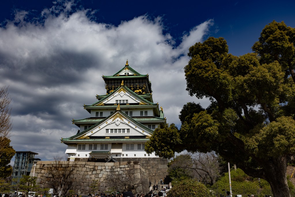 Nähtävyyksistä merkittävimmän vaikutuksen tekivät Osakan puinen kiviterassien ja muurien taakse rakennettu linna ja linnan pihalla 1900-luvun eurooppalaista jugend-arkkitehtuuria muistuttava kivirakennus. Jälkimmäistä käytettiin sodassa komentokeskuksena. Ehkä juuri siksi myös linna sai sodassa osumia, mutta se on suurelta osin rakennettu alkuperäiseen 1600-luvun loistoonsa. Sisälle emme menneet, koska jono olisi vienyt vähintään kaksi tuntia.