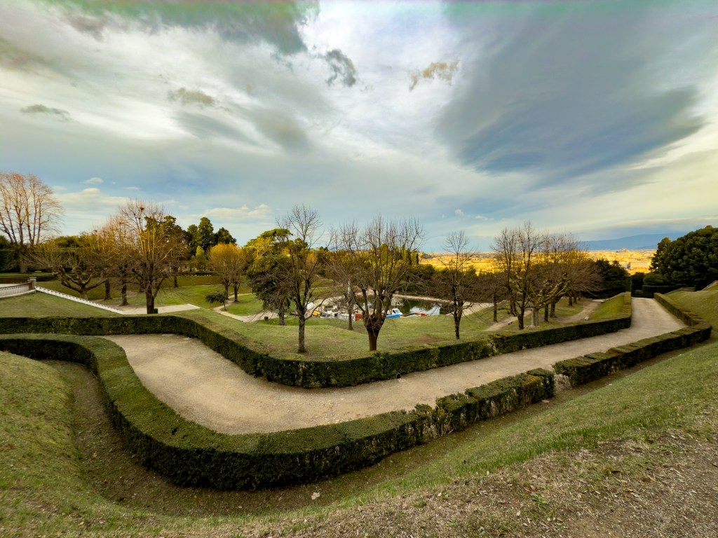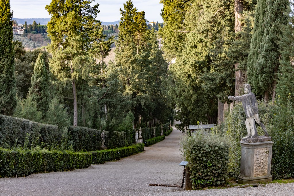 Aamuauringon värittäessä taivaan oranssiin ennen sinistä heleyttä, joka iltapäivällä pehmenee monikerroksiseksi samettisuudeksi, tajuamme miksi juuri Firenzen talvi on kiehtonut kuvataiteilijoita. Meitä ilahduttaa myös väljyys, sillä saatamme kävellä ja katsella ympärillemme ilman että törmäämme turistimassoihin. Aamuyhdeksältä Bobolin puistossa emme näe ainuttakaan toista kulkijaa. Sypressit saattavat olla samoja, joiden havujen tuoksussa Gallénit ystävineen etsivät aikoinaan sopivaa pysähdyspaikkaa maalaustelineille tai eväskorilleen. Ehkä juuri täällä Mary harjoitteli polkupyörällä, velocipedillä, ajoa.