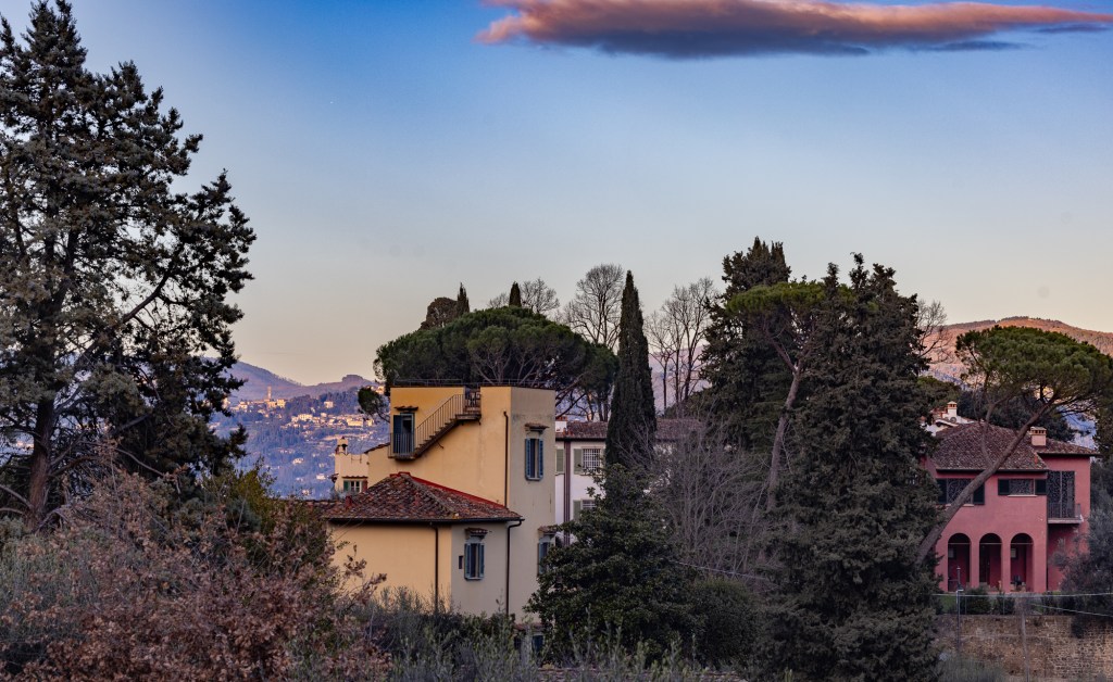 Puistikko, jossa Villa Bobolino, taustalla Firenze