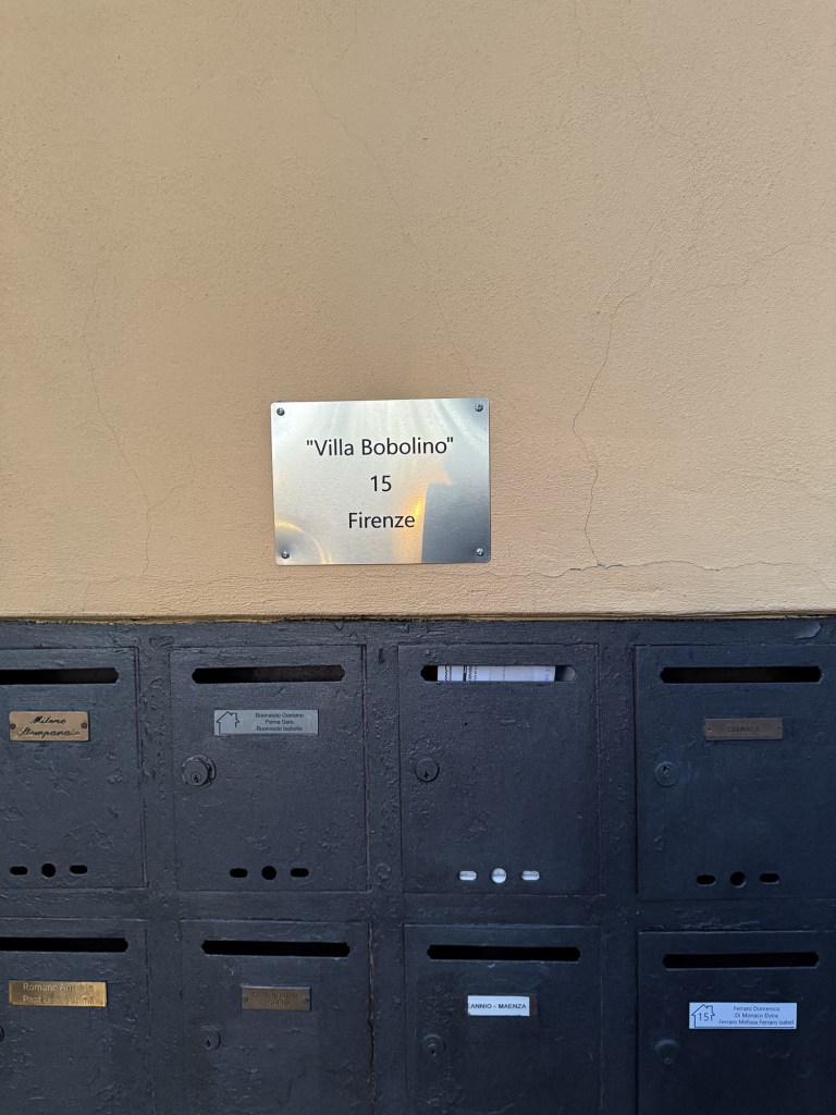 Etsimme huvilan, jonka ikkunoista avautui iltapäivisin lempeän sinervä maisema yli Firenzen. Mary mainitsee muistiinpanoissaan osoitteeksi Via dei Colli, numero 3. Tonttijaot ja numerot ovat vuosien varrella muuttuneet. Villa Bobolino on nykyisin pieni taloryhmä samannimisessä puistikossa, joka on suljetun portin takana. Oppaamme Lucan mukaan Gallenit asuivat todennäköisesti puistikon keskellä, sen suurimmassa talossa. Hän on eläkkeellä oleva professori, joka puuasiantuntijana on tutkinut mm. Mona Lisan ajoitusta ja taustan kohdetta teoksen raamin perusteella. Ylva on ystävystynyt Lucaan etsiessään isoisovanhempiensa, Juhani Ahon ja Venny Soldan-Brofeldtin, kotia. Ahot asuivat pitkään Firenzessä 1903-1904, mutta siitä tuonnempana.