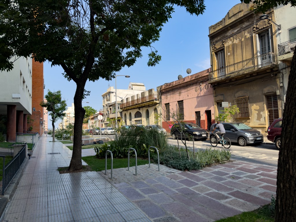 Ensimmäiseksi pysähdyimme Uruguain pääkaupunkiin, Montevideoon. Se on Buenos Airesista kolmen tunnin lauttamatkan päässä koilliseen, Rio de Platan pohjoisrannalla. Yövyimme laivassa keskellä lahtea. Aamulla pääsimme kävelemään Montevideon vanhaan kaupunkiin. Koska Montevideo ja Buenos Aires ovat saman virran suussa, on ilmeistä, että kaupunkien historiat liittyvät yhteen. Ja tosiaan googlesta löytyy: Buenos Airesin espanjalaiskuvernööri päätti Montevideon perustamisesta, jotta portugalilaiset saatiin pidetyksi poissa alueelta. Molemmissa satamissa tanssittiin tangoa, ja nyt kiistellään, missä tangon ensirytmit syntyivät. La Cumbarcitan väitetään kehittyneen Montevideon satamassa. Emme saaneet varmuutta, sillä Salvon palatsin tangomuseo oli kiinni. Niin olivat Montevideon muutkin palatsit, löysimme vain Plaza Independencian, Plaza Constitucionin ja Plaza Zabalan. Vaikka emme nähneet kuin niemen kärjen Montevideosta, ja vaikka jotkut matkalaiset lähtivät tutustumaan kaupunkiin, sen puistoihin ja rantoihin viiden kilometrin päässä ja he kertoivat nähneensä kauniita huviloita, me emme vakuuttuneet kaupungin viehkeydestä. Keskeisessä turistikohteessa, vanhassa kaupungissa, palatsien ikkunoita oli peitetty pahvilla ja pellillä, maalia ja lakkaa kaipaavat massiivipuuovet oli suljettu ketjuin, tuuli oli levittänyt röykkiöittäin roskia kaduille ja satamaan johtavan päätien varrella näkyi tarpaulin-peitteestä kyhättyjä asumuksia.