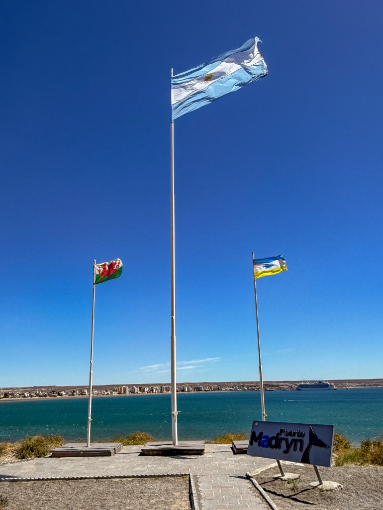 Puerto Madryn oli seuraava pysähdyspaikka. Se on kehittynyt vähän yli sadantuhannen asukkaan kaupungiksi vasta 1970-luvulta. Silloin alumiinitehdas käynnistyi. Rantaan on syntynyt myös laavakivestä laattoja leikkaava ja kiillottava tehdas, jonka tuotannon italialaisomistaja vie suurelta osin Italiaan. Aiemmin Madryn oli kalasatama. Asutuskeskus syntyi, kun kuningatar Victorian kielipakotteita Walesista paennut siirtokunta rantautui suojaiseen poukamaan vuonna 1865. Purjelaivassa oli 150 ihmistä. Nimet on kaiverrettu niemenkärjen muistomerkkiin. Edelleen kouluissa opetetaan sekä walesia että espanjaa. Mutta kun maiseman karuutta katselee, tulee mieleen, millaisen shokin maahan tulleet saivat. Siellä oli pulaa jopa makeasta vedestä. Paluuta ei ollut. Päätös suunnata keula kohti tätä lahtea oli tehty Darwinin kuvausten pohjalta. Kolmisenkymmentä vuotta aiemmin hän tutki Etelä-Amerikan rannikkoa ja totesi Patagonian rannikon tällä kohdin olevan lähes asumaton. Intiaanien kanssa ei siis tarvinnut taistella. Mutta voimme vain arvata miltä pakkasviima Walesin vihreiden kukkuloiden jälkeen on tuntunut, kun he saapuivat autiolle lakeudelle pahimpaan talvihetkeen heinäkuussa. Onneksi meri on tarjonnut syötävää siitä lähtien, ja lampaat viihtyvät vaatimattomissa oloissa. Tuuli tuiversi kylmästi meidän merileijonaretkellämme jopa nyt helmikuussa, täällä Patagoniassa kesän lopulla.