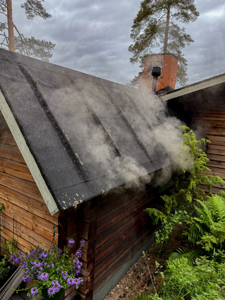 Saunarakennus oli WSOY:n saamassa testamentissa, mutta kustantamossa epäiltiin kirjailijoiden kykyjä kivisen tulisijan lämmityksessä, polttaisivat sen kuitenkin. Kun seuraamme savusaunan saattamista kylpykuntoon, se tosiaan vaatii rauhallisuutta, lähes pyhää kunnioitusta. Seinät on vastikään imetty puhtaiksi liiasta noesta, koivuhalot hakattu sopiviksi, tuohi tilkkeeksi, pikku pesällinen palaa kerrallaan, kunnes neljän tunnin kypsytyksen päätteeksi hehkuvat hiilet nostetaan vesipadan alle. Ja ah mikä nautinto löylyssä, pellavaisen laudeliinan päällä pikkuruisesta ikkunasta ulos katsellen. Ihohuokoset avautuvat hitaasti ja lämpö lähenee pinnalta sisälle sieluun asti. On helppo kuvitella, kuinka moni esi-isistämme on tervehtynyt saunassa, syntynytkin sen lempeässä lämmössä.
