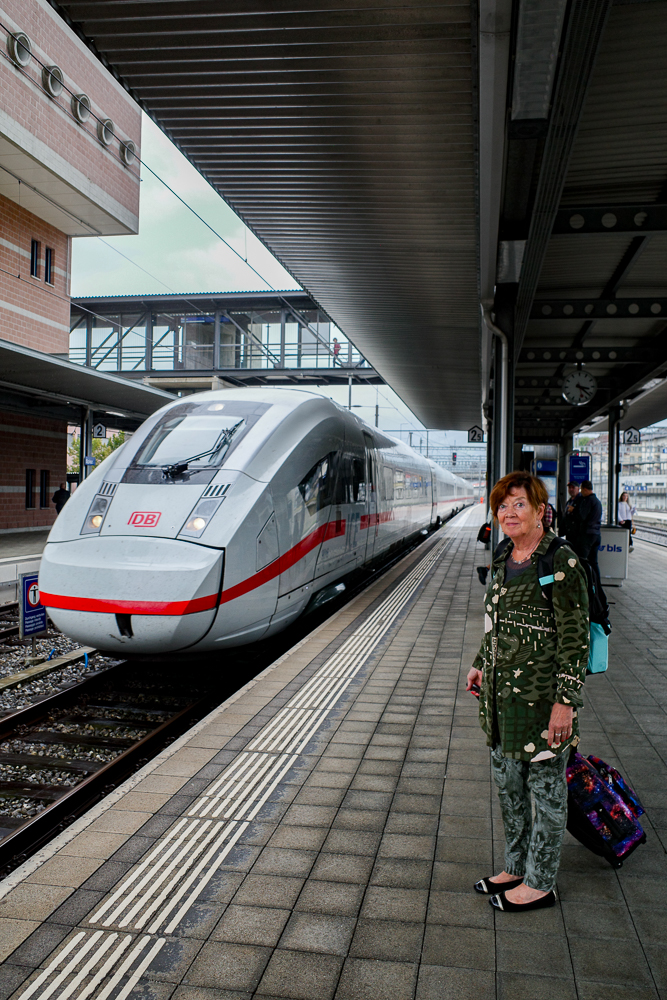 Sää kolmen tunnin tauolle mitä parhain, ei liian kuuma eikä kylmä, ei sadetta ennen kuin nousemme Hampuriin menevään junaan. Se on tässä vaiheessa 3 minuuttia myöhässä. Ei huolta. Sveitsissä kaikki toimii ja juna kirii aikatauluunsa, kun saavutamme Baselin 17:01.