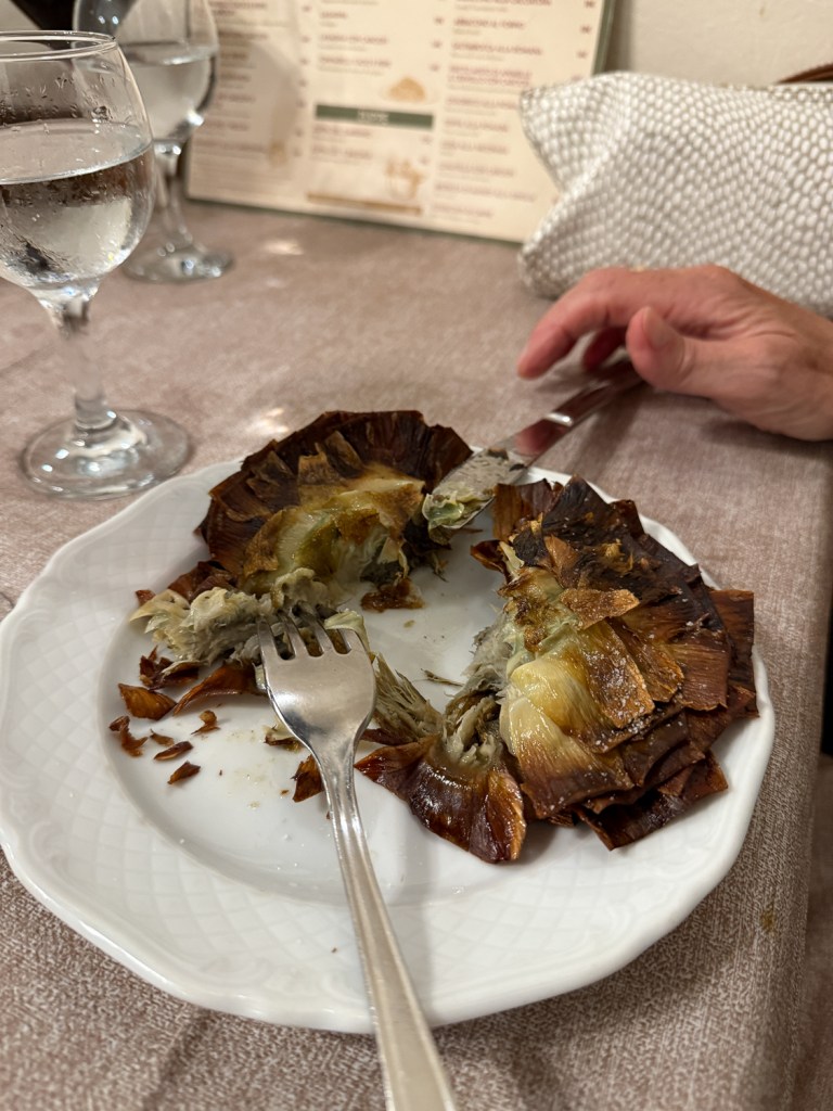 Suunnitelmissamme oli matka Roomaan. Kuinka ollakaan, maanantaille 22.9.2025 iski junalakko. Matkanjohtaja oli ehtinyt varata Rooman Trasteverestä Air B&B -asunnon. Omistajalle ei sopinut peruutus eikä ajankohdan siirto päivällä tai kahdella, joten muu ei auttanut kuin käynnistää 18-vuotias kärrymme ja ajella Roomaan. Kyydissä ei ollut valittamista, mutta kuskille tuli hiki ratinväännöstä Trasteveren kujilla varsinkin, kun bemarivanhuksemme on ilmastoa kuormittavaa laatua ja emme ole Roomalaisia. EU4:ksi leimatulla kulkuneuvolla saa pilata Rooman hengitysilmaa vielä pari kuukautta, mutta ei-paikkakuntalaiset saavat ajella Trasteveren katuja vain rajoitettuina aikoina.