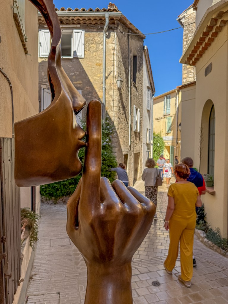Rinteiden keskiaikaiset kylät ovat Ranskan puolella siistimpiä kuin Italiassa. Mandelieu-la-Napoulen kujat ja portaikot on laatoitettu ja vaikka rinteet viettävät, niillä on helppo kulkea kankeimminkin jaloin, kompuroimatta. 1400-luvulla rakennettu massiivinen La-Napoule -linna ja rantaviivan kävelytie tarjoavat syyskesän auringossa mitä kuvauksellisempia näkymiä. Mandelieun portilla Picasson patsas tervehtii tulijaa. Hänen teoksiaan on edelleen kylän gallerioissa myytävänä. Piirroksen olisi saanut 200 eurolla. Hän on viettänyt aikaa seudulla maalaten ja keramiikkatöitä tehden. Suomalaisista taiteilijoista ainakin Edelfelt vietti useita kertoja viikkoja Rivieralla. Hän piti erityisesti Cannesista ja MonteCarlosta, luonnon vehreydestä ja merestä. Keväällä 1891 Edelfeltin Erik-poika oli kolme kuukautta hoidettavana Ospedaletti-nimisessä kaupungissa, Italian puolella, San Remon lähellä. Sinäkin aikana Edelfeltiltä syntyi useita töitä.