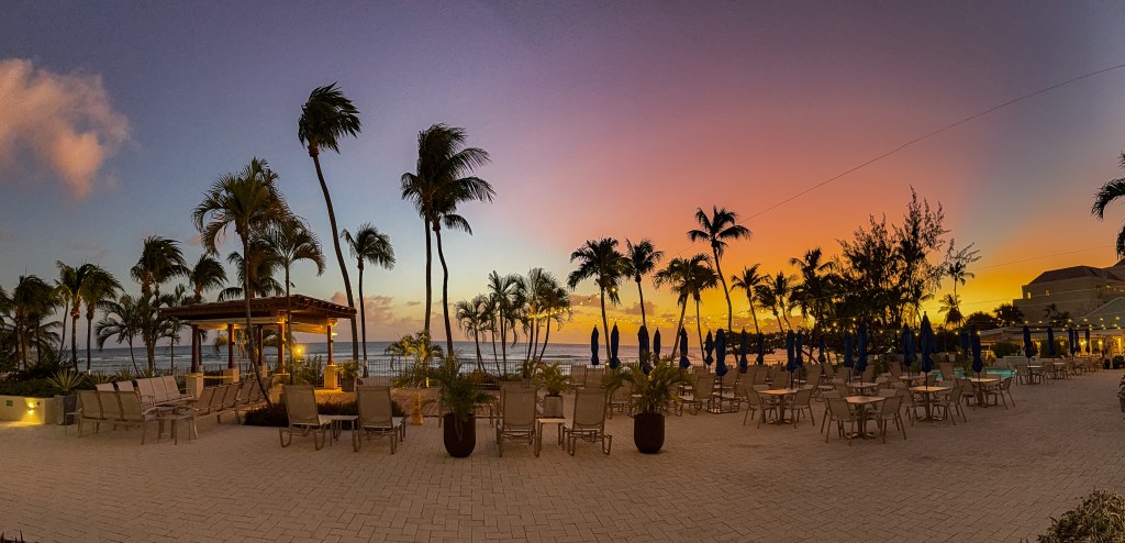 Matkanjohtaja oli valinnut meille Bridge Townista 50-vuotta vanhan kolmekerroksisen perhehotellin. Huoneemme 64 ovi oli suoraan laatoitetulle terassipihalle, uima-altaalle oli 20 metriä ja sen takaa avautui leveälle rantakaistale. Hotellin nimikkokissa tervehti meitä joka aamu lasioven takana. Kauramaitoa se lipoi mielellään. Yhtenä iltana se toi huoneemme edustalle, pensaan juureen, luottamuksen osoituksena hiiren. Niitä siellä liikkui. Näin päivällä jalkahoitolasta tullessani hotellin lähellä rotan juoksevan roskalaatikon taakse piiloon.