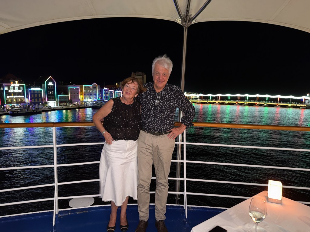 Laivan La Terrazza -ravintolaan ihastuimme, sillä seisovasta pöydästä sai poimia aamiaiseksi ja lounaaksi ihan mitä tahansa mieleen juolahti. Illallisilla sai valita ruoat listalta. Vaihtoehtoravintoloita oli muutama. Suurin osa niistä kuuluivat kokonaispakettihintaan, alkoholijuomista alkaen. Vuosikertaviineistä olisi joutunut maksamaan, mutta emme kaivanneet Baroloa emmekä Franciacortaa. Vettä oli jääkaapissa kuplallisena ja kuplattomana. Istuimme usein kannella ja nautimme leppoisasta merituulesta. Upein illoista oli Willemstadin satamassa, ei tuullut ja etelän yö tähtitaivaineen oli juuri niin kaunis kuin voi vain kuvitella.